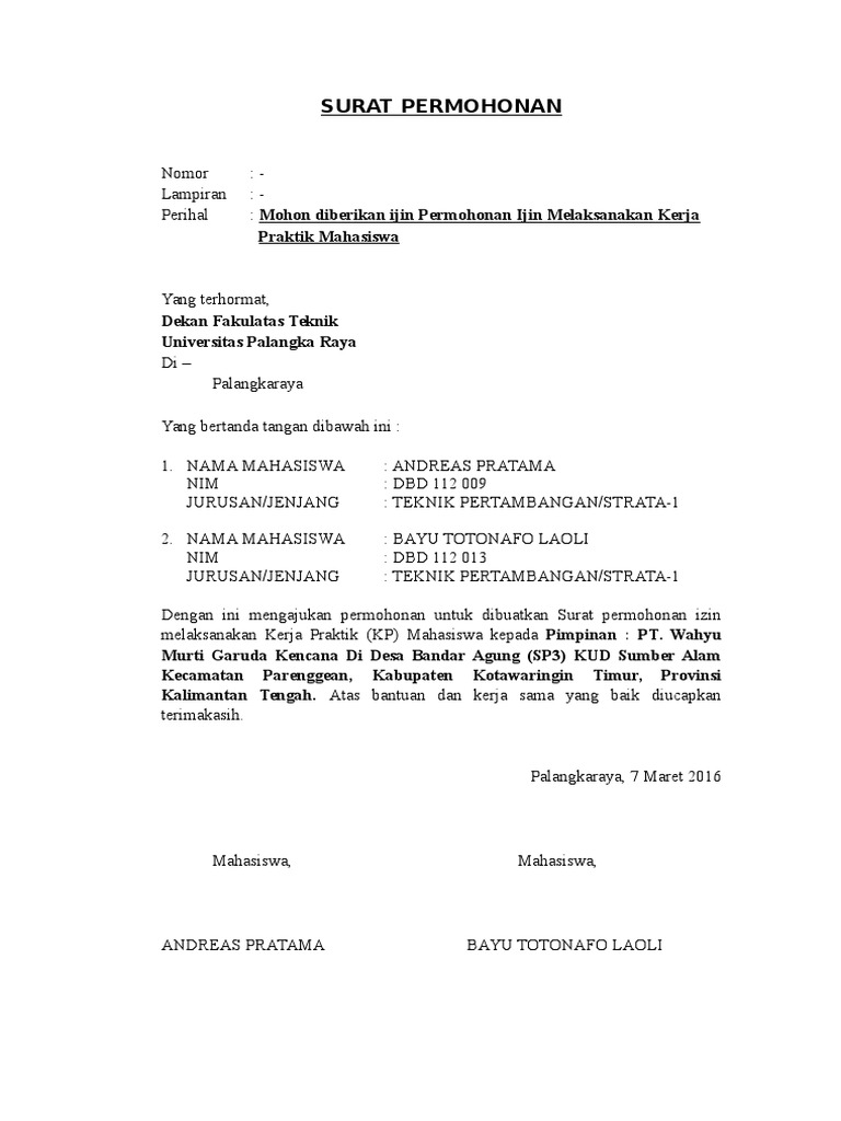 Contoh Surat Permohonan Pengantar Kp Ke Fakultas Pdf