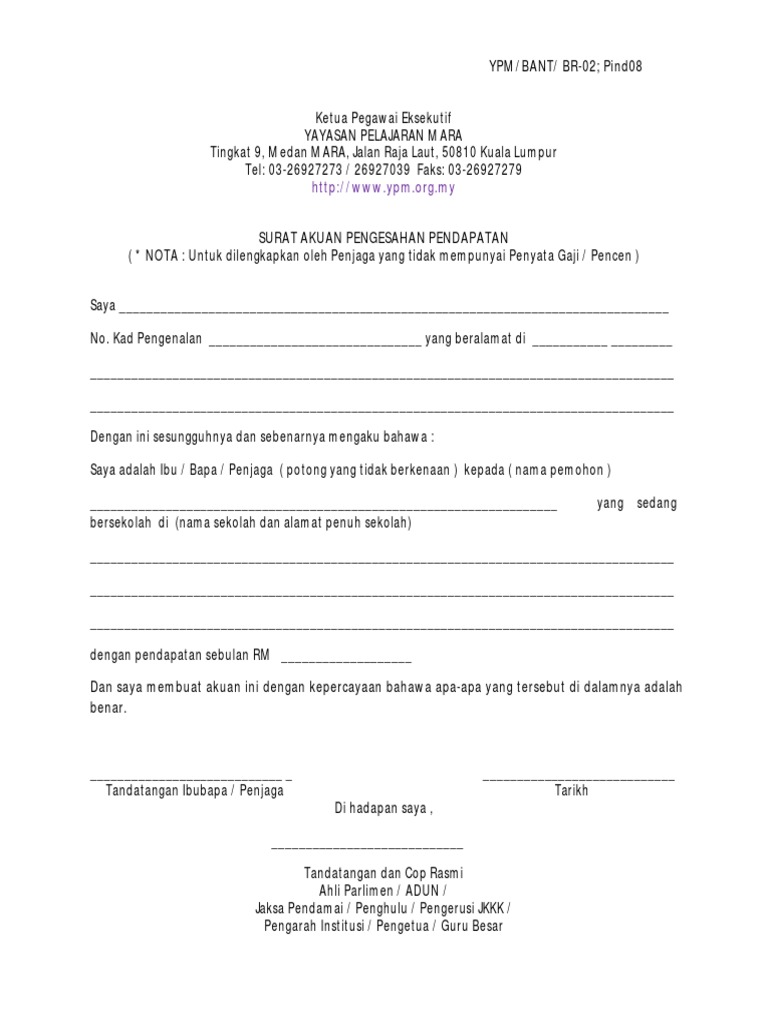 Salinan Penyata Pendapatan Ibu DAN Bapa Penjaga SLIP GAJI PENYATA PENDAPATANPENYATA PENCEN Salinan Sijil Berhenti Sekolah. Web Butiran yang perlu ada dalam Surat Akuan Pengesahan Pendapatan adalah seperti berikut. Antara Contoh surat pengesahan pendapatan yang boleh dirujuk dan.